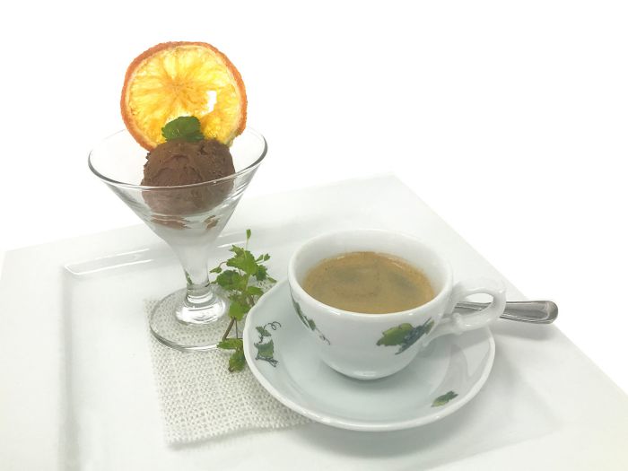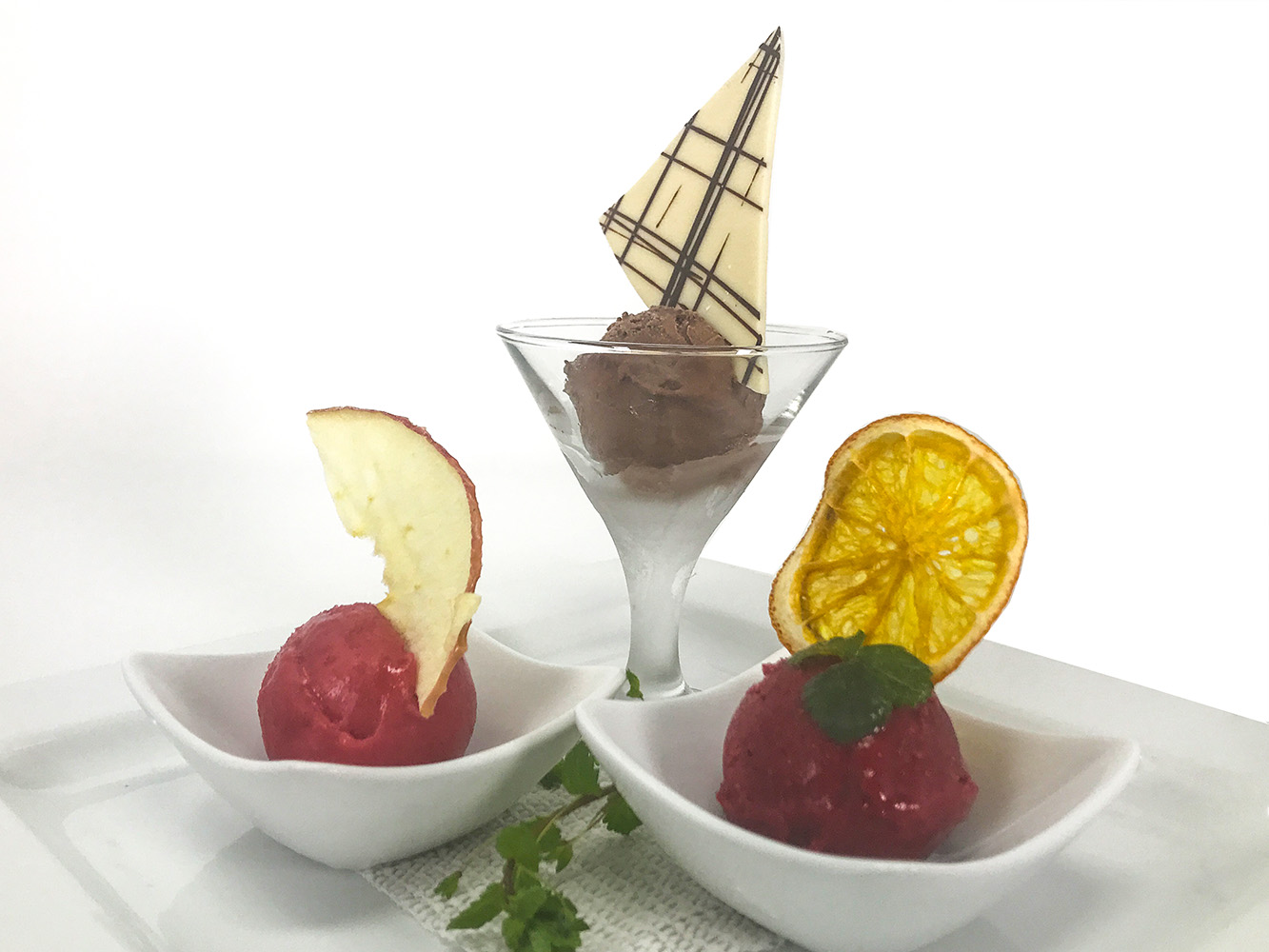 Zweierlei Fruchtsorbet und schwarzes Schokoladeneis