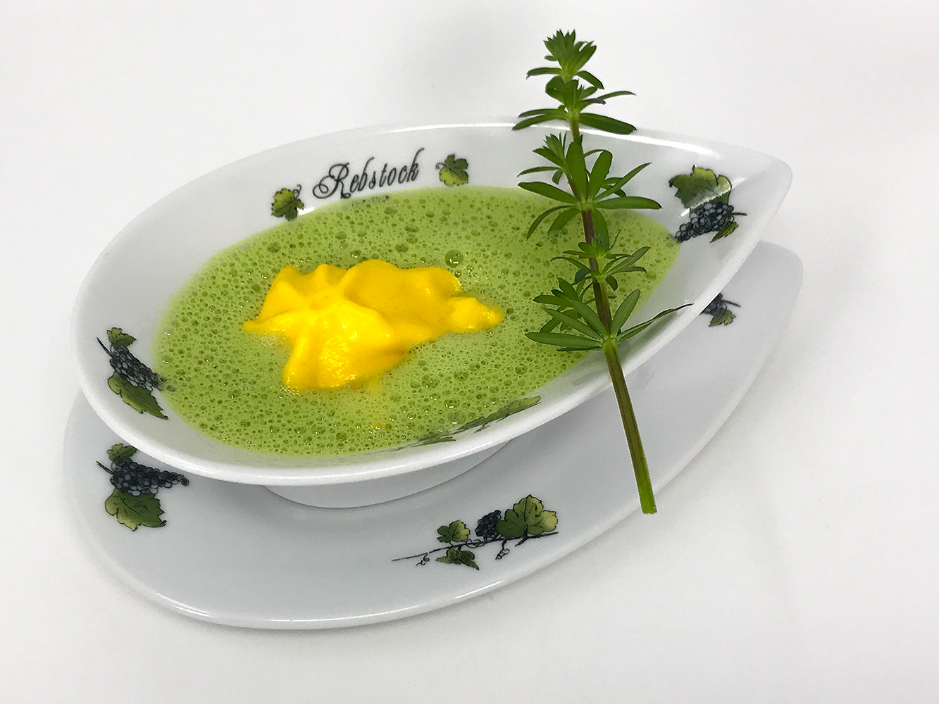 Süppchen vom Wiesenlabkraut mit Karottenschaum