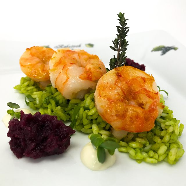 Gebratene Gambas auf Bärlauchrisotto