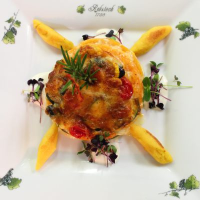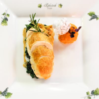 29,00mit Gemüse-Allerlei gefüllt, Kartoffel-Thymianpüree und geschmolzenem Ziegenfrischkäse