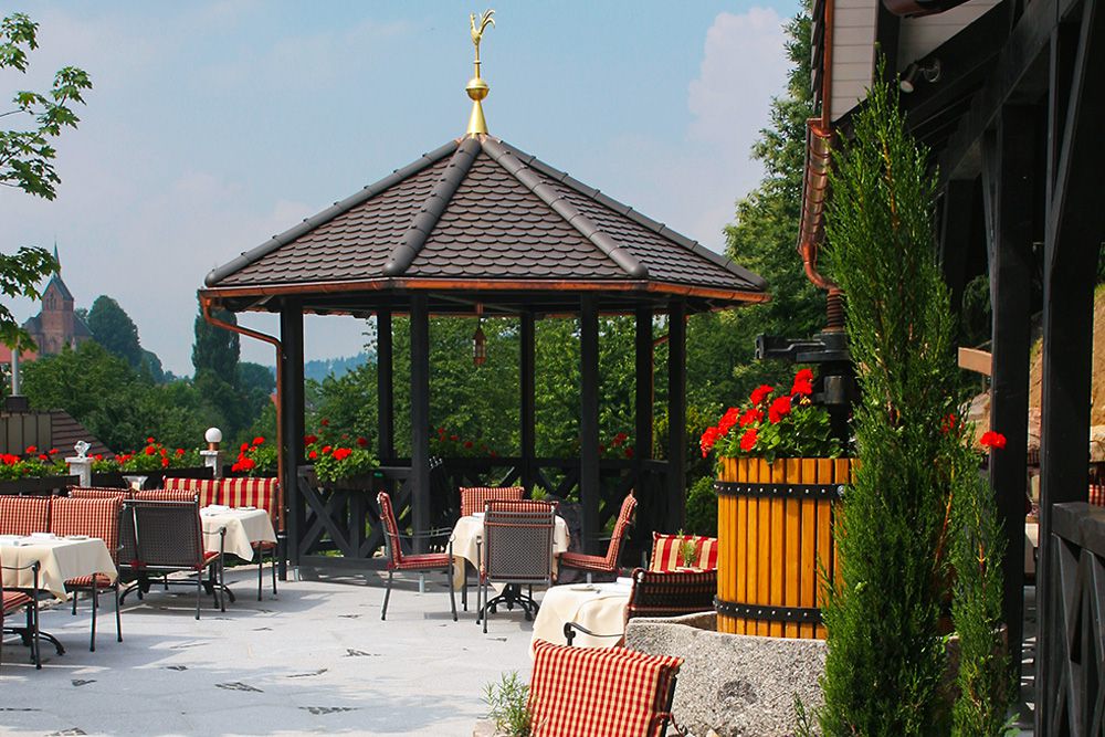 gedeckten Tischen mit einem guten Tropfen aus unserem Weinkeller.